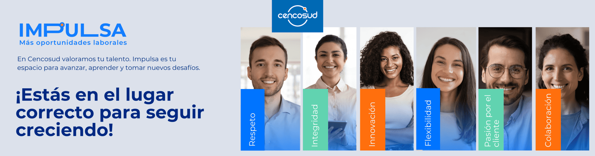Impulsa es nuestro programa creado para que puedas seguir creciendo dentro de Cencosud, postulando a nuevos roles y desafíos profesionales. Aquí encontrarás todas las vacantes activas disponibles para ti como colaborador.